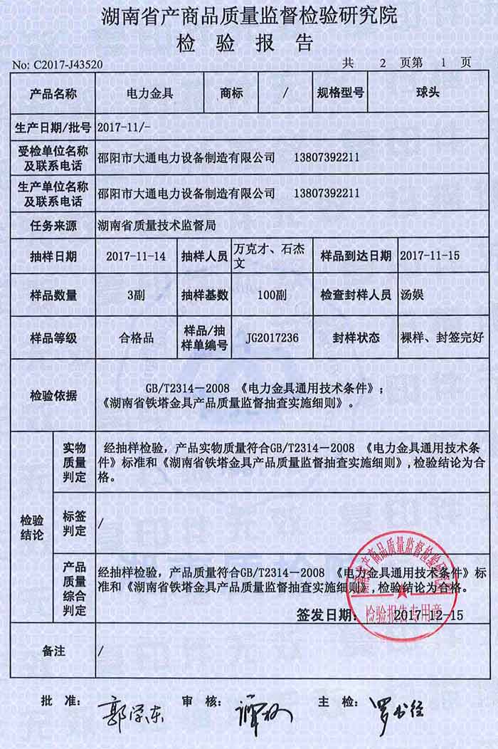 球頭檢驗報告